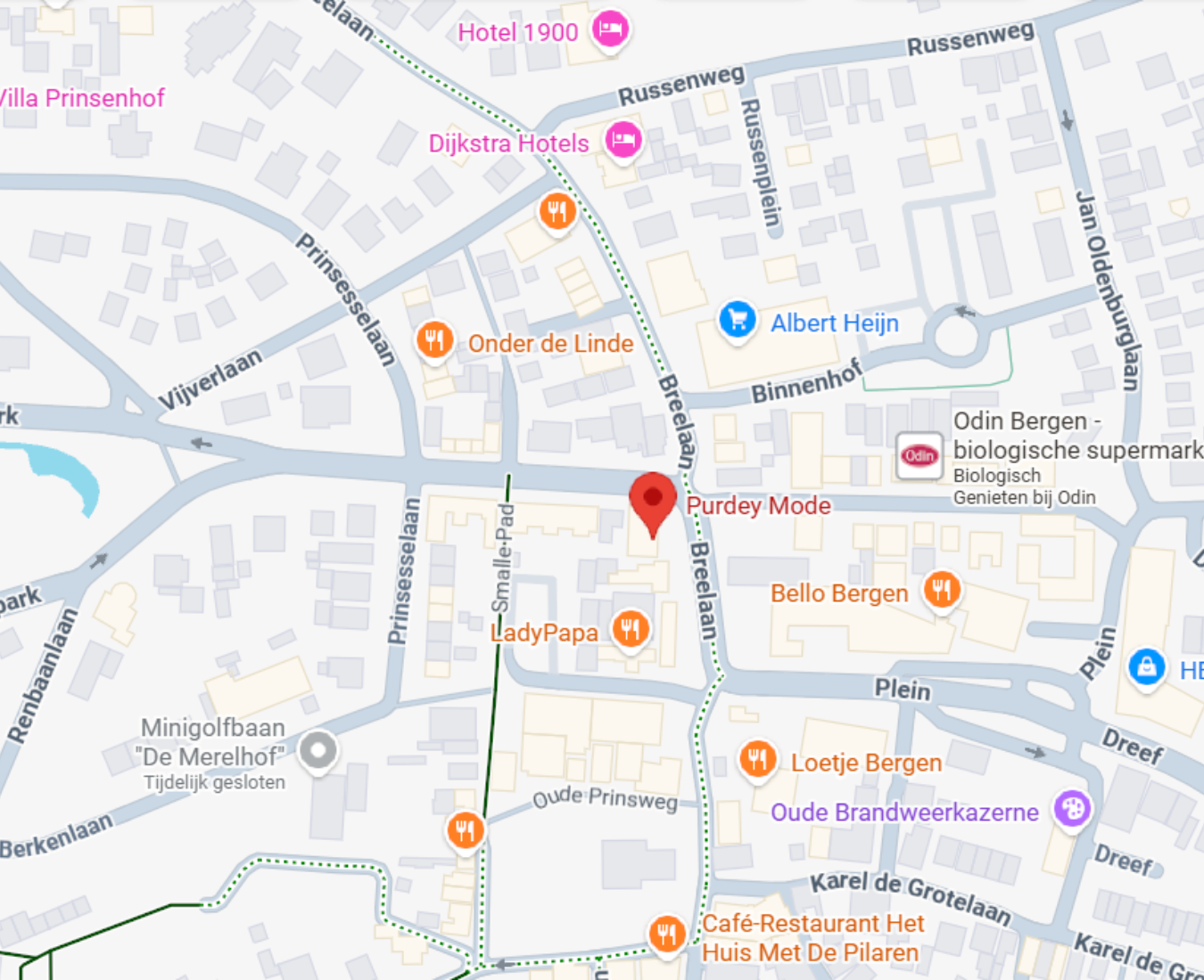 Aan de karakteristieke Breelaan in Bergen vindt u Purdey, een winkel die perfect aansluit bij de artistieke en ontspannen sfeer van het dorp. Bergen staat bekend om haar culturele karakter, groene omgeving en verfijnde rust — elementen die u ook terugziet in de collectie van Purdey.